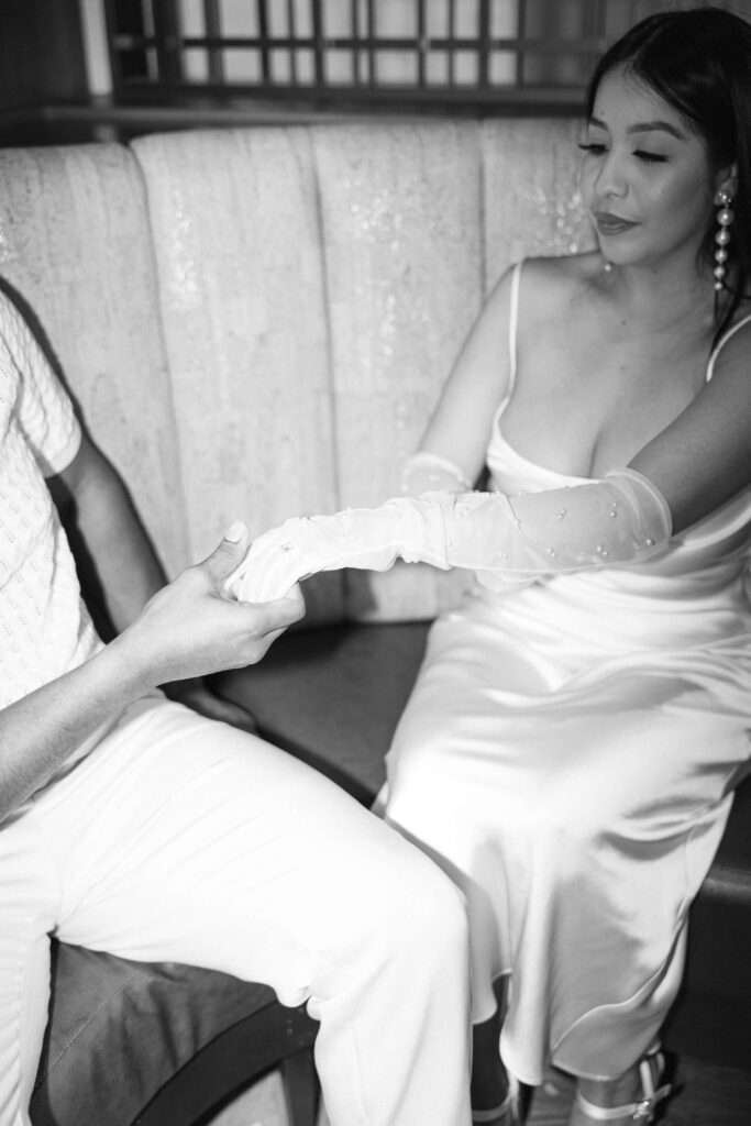 Imagine this: The Beeman Hotel, right in the heart of the city, provided the perfect setting for Prisciella and Girard’s chic style. Prisciella looked absolutely radiant, showcasing two outfits – white and black, with matching elbow-length gloves. And Girard rocked a sophisticated set of outfits to match.